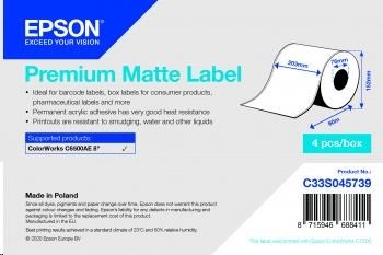 Epson label roll, normal paper, premium matt coated, fits for: Epson ColorWorks CW-C6500, roll-width: 203 mm, length: 60m.