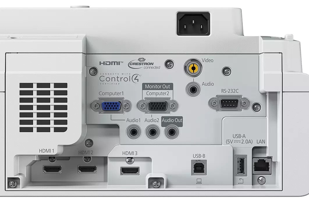- Řízení projektoru: via: Crestron Integrated Partner, Crestron RoomView, Extron IP Link, zjišťování zařízení AMX, Control4 Simple Device Discovery Protocol