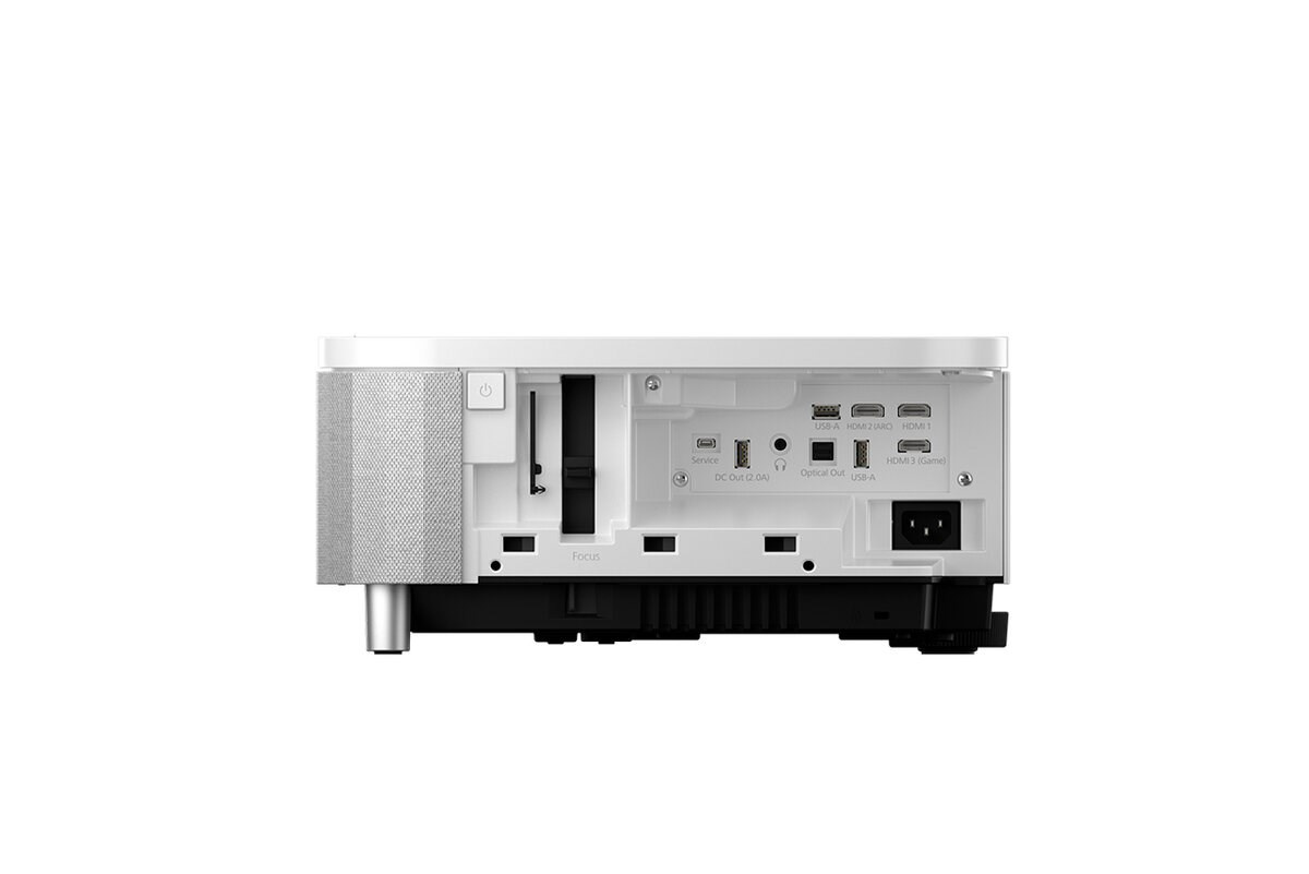 3LCD projektor laserový, 4K PRO-UHD rozlišení, poměr stran 16:9, kontrastní poměr 2 500 000 : 1, laserový zdroj světla. Úhlopříčka obrazu 80-150 palců, projekční vzdálenost 0.3-0.5 m. Manuální ostření. Vestavěný reproduktor. Konektory USB 2.0 typ A, USB 2.0 typ B, HDMI ARC, audiovýstup, Wi-fi. Rozměry695 x 341 x 156 mm, hmotnost 12,3 kg.