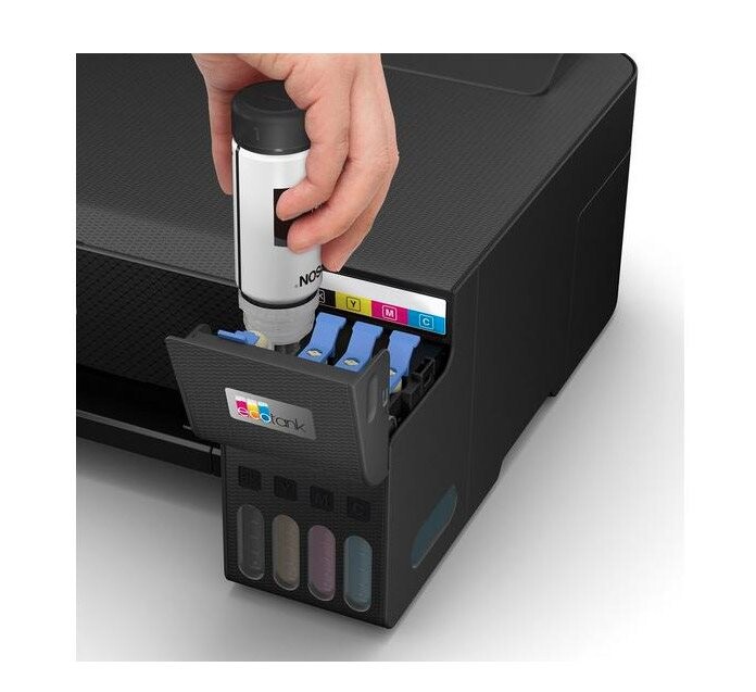 Epson byla první společnost, která nabídla na trh specializované tiskárny bez inkoustových kazet. Nyní je celosvětovou jedničkou mezi dodavateli tiskáren s inkoustovými nádržkami. U tiskárny Epson EcoTank L14150 je nádržka s inkoustem umístěna v přední části tiskárny. Tento nový design je kompaktní a umožňuje snadný přístup při doplňování inkoustu a zároveň poskytuje dokonalý přehled o jeho stávající hladině.