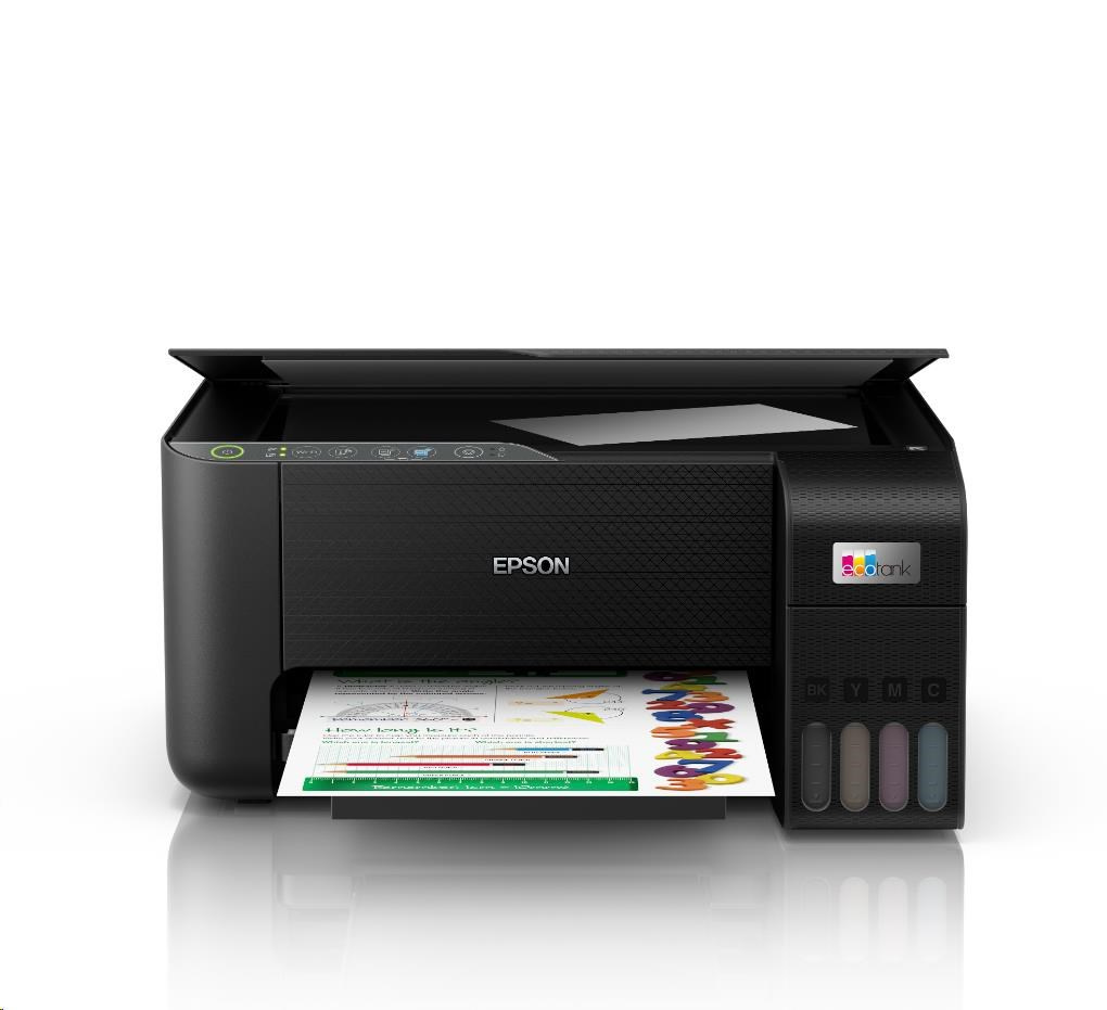 Barevná tiskárna s tankovým systémem, kompaktní velikost, pro doplnění z inkoustových lahviček. Tiskové rozlišení až 5.760 x 1.440 dpi. Čtyřbarevný tisk. Rychlost tisku 33 Str./min Černobíle (obyčejný papír), 15 Str./min barevně (obyčejný papír), 27 s na fotografii 10 x 15 cm (Papír Epson Premium Glossy Photo Paper), bezokrajový tisk (do velikosti 10 x 15 cm), USB rozhraní.