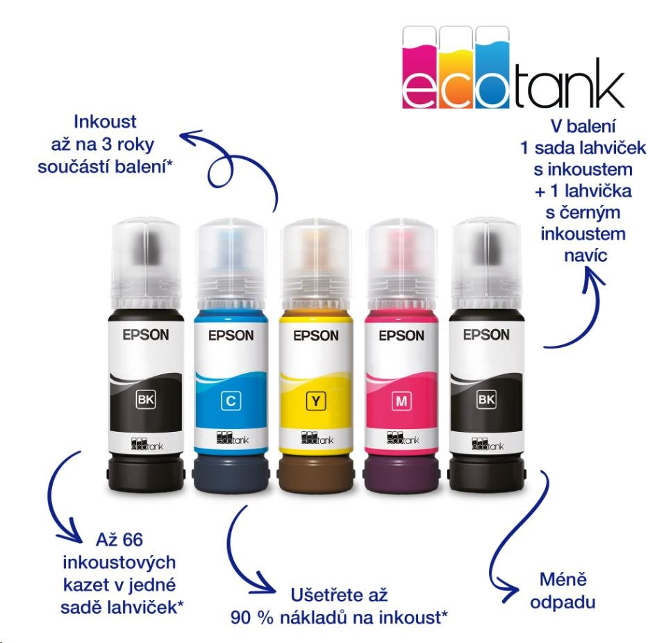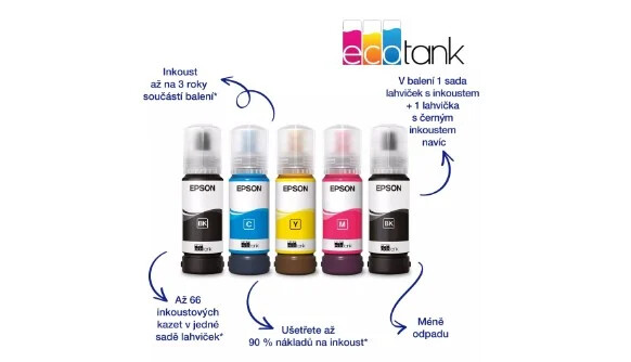 Hledáte spolehlivé a cenově zajímavé řešení pro tisk dokumentů? EcoTank tiskárny jsou ideální volbou pro domácí kanceláře, malé podniky i náročné uživatele. Díky inovativnímu systému doplnitelné nádrže na inkoust poskytují EcoTank tiskárny výrazné úspory nákladů na tisk a bezproblémový provoz bez časté výměny kazet.