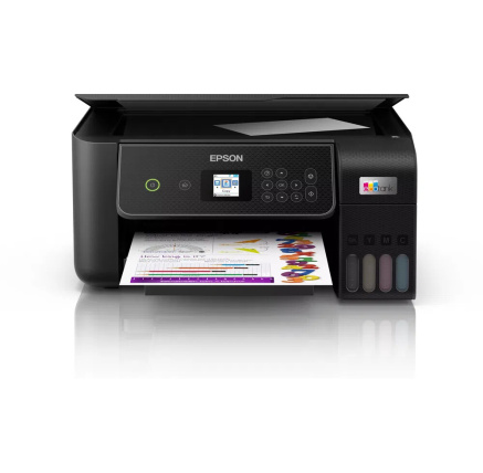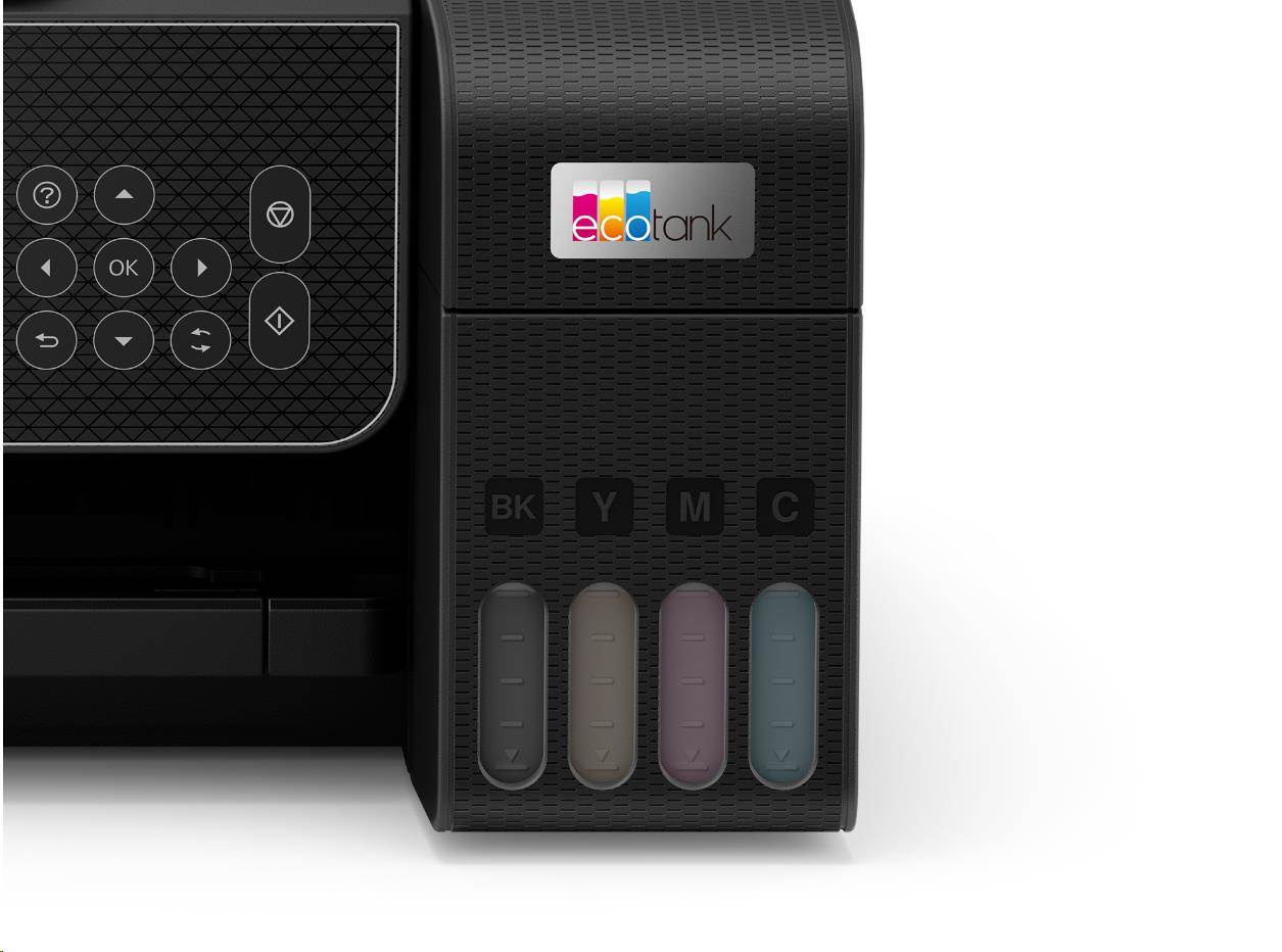 Barevná tiskárna s tankovým systémem, kompaktní velikost, pro doplnění z inkoustových lahviček. Tiskové rozlišení až 5.760 x 1.440 dpi. Čtyřbarevný tisk. Rychlost tisku 33 Str./min Černobíle (obyčejný papír), 15 Str./min barevně (obyčejný papír), 27 s na fotografii 10 x 15 cm (Papír Epson Premium Glossy Photo Paper), bezokrajový tisk (do velikosti 10 x 15 cm), USB rozhraní.