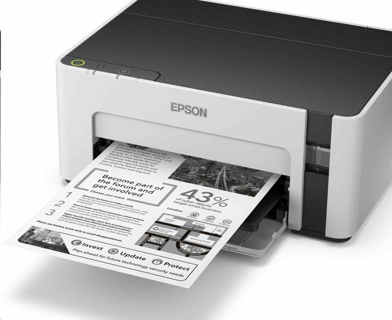 Černobílá tiskárna Epson EcoTank M1120 nabízí rychlý a kvalitní tisk, ale zároveň i úsporu. Její praktické rozměry a využití vás potěší nejen v domácnosti, ale i v kanceláři.
