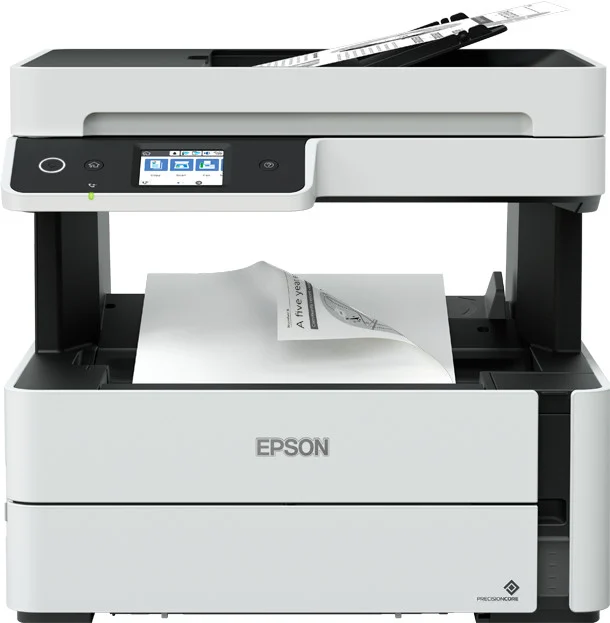 Tiskárna EcoTank M3180 patří mezi černobílé multifunkční modely společnosti Epson s integrovaným systémem inkoustových nádržek, což znamená, že obsahuje zabudovaný skener, kopírku a fax. Tisknout můžete dokumenty ve vysokém rozlišení v hodnotě 1200 x 2 400 dpi.
