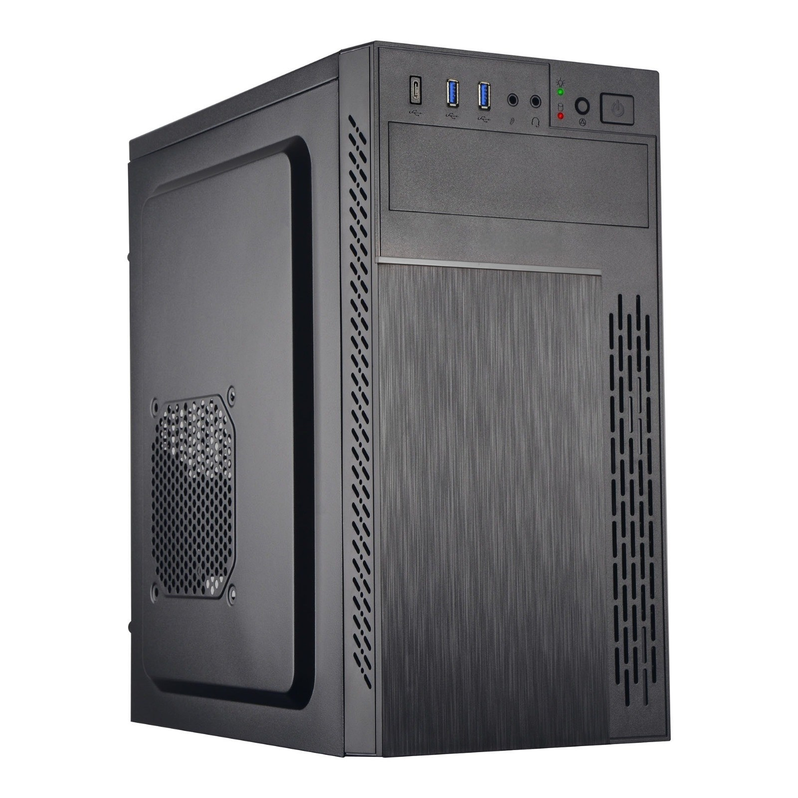 EUROCASE skříň ML M6-505B, Midi Tower, 1xUSB-C, 2x USB 3.0, 2x audio, bez zdrojeProvedení skříně:Mini Tower / micro ATX; Výkon zdroje (W):0; Barva skříně:Černá; Počet pozic 5.25":1; Počet pozic 3.5" (HDD):2; Počet pozic 2.5" (SSD):3; Bočnice:Plná; Podsvícení:bez podsvícení; Vybavení PC skříně:Přední Audio panel, Přední USB panel.