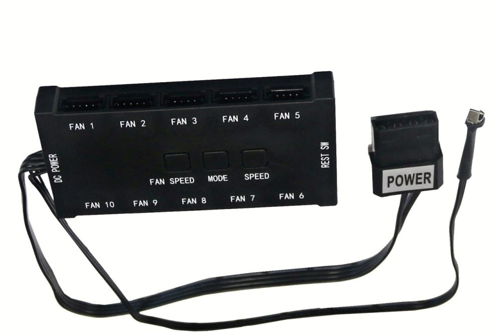 - řídící jednotka umožňuje připojení až 10ks ventilátorů a ovládání tlačítky přímo na jednotce, napájení jednotky přes konektor "molex" z PC zdroje