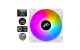 ARGB LED ventilátor typu rainbow s LED diodami. Ventilátor umožňuje najednou zobrazit všech sedm barev duhového spektra. Jedná se o kontrolní ventilátor, který je určen pro použití s ventilátorem EVOLVEO 12FS. LED osvětlení je ovládáno pomocí tlačítka reset nebo LED tlačítka na ovládacím panelu skříně nebo připojením přiloženého ARGB kabelu k základní desce.