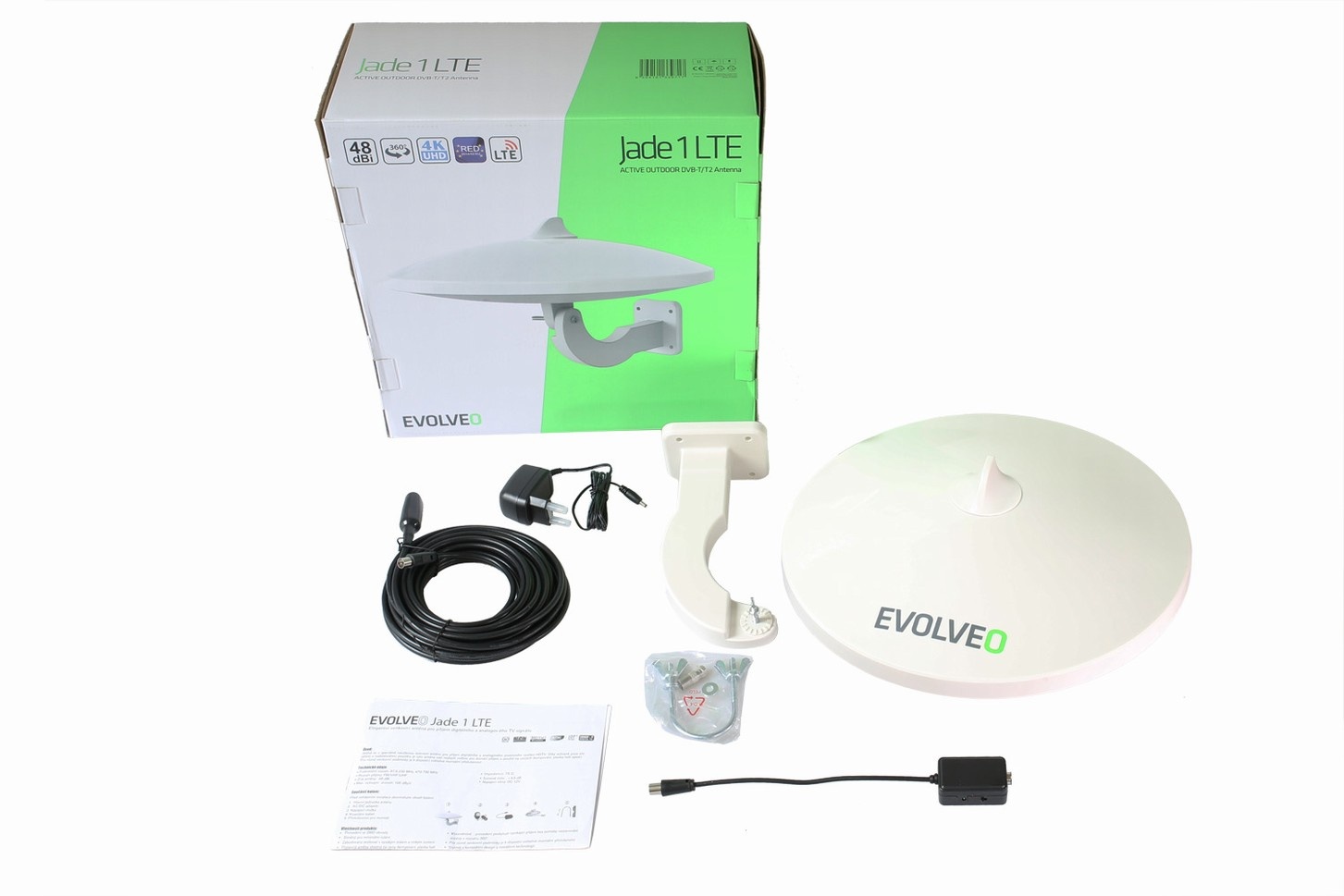 EVOLVEO Jade 1, aktivní venkovní anténa FM/DAB+/DVB-T2, filtr LTE,4G,5GTyp příslušenství:Anténa.