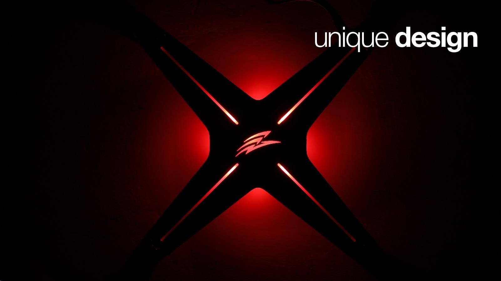 Nový typ ventilátoru s unikátním bezrámečkovým designem a červeným podsvícením. LED diody jsou umístěné v kruzích po obvodu vniřní strany. Speciální tvar lopatek pomáhá zlepšení proudění vzduchu uvnitř počítačové skříně. Instalace ventilátoru pomáhá v chlazení procesoru, grafické karty a dalších komponent. 4pin konektor s možností regulace otáček.