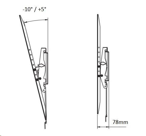 Sklopný držák na Tv 55" až 90" a podporou VESA standard 200x200 až 800x600, nosnost 90kg LCD držák Tv sklopný Fiber Mounts D90 Nová generace špičkových sklopných držáků, u kterých je dbáno na nejvyšší kvalitu, absolutní bezpečnost a funkčnost. Držáky umožní náklon obrazovky v rozmezí +5° až -10°, náklon je možné samozřejmě zajistit v požadované poloze. Držák podoporuje standartizované zavěšení obrazovek, VESA standard 200x200 až 800x600. Bezpečnost je zajištěna automatickým systémem dvou západek, které zajistí obrazovku proti vysazení nebo náhodnému pádu ihned po usazení na držák. Uvolnění je pak možné pomocí dvou táhel, které uschováte za obrazovkou. Bezpečnost zvyšuje i kvalitní materiál a robustní ocelová konstrukce. Nosnost držáku je certifikována na maximální zatížení až 90kg. Vzdálenost obrazovky od stěny je 78mm. Dodáváme v černém provedení. Na držák je poskytována záruka 10 let. Technické údaje: maximální zatížení 90kg na obrazovky s úhlopříčkou 55" až 90" podpora VESA standardů 200x200 až 800x600 náklon obrazovky nahoru až +5° náklon obrazovky dolů až -10° zajištění obrazovky v požadovaném úhlu sklonu vzdálenost Tv od stěny 78mm automatický systém zajištění obrazovky proti vysazení a náhodnému pádu uvolnění pomocí 2 táhel, která jsou uschována za obrazovkou kvalitní bezpečná konstrukce robustní materiál TOP kvalita, profesionální zpracování, 100% funkčnost barva černá záruka 10 let Držák podporuje VESA standardy: VESA 200x200 VESA 300x200 a 200x300 VESA 300x300 VESA 400x200 a 200x400 VESA 400x300 a 300x400 VESA 400x400 VESA 600x400 a 400x600 VESA 800x400 VESA 800x600.