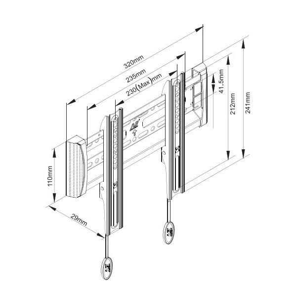 Fixní držák Tv monitoru NB C1FProfesionální fixní držák na LCD LED plazma Tv a monitory 17-43", VESA 75x75 až 200x200, vzdálenost od zdi 29mm, nosnost 18kg, automatické zajištění Tv na držáku.