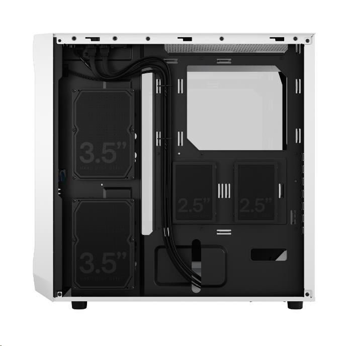 FRACTAL DESIGN skříň Focus 2 RGB White TG Clear Tint, 2x USB 3.0, bez zdroje, mATXProvedení skříně:Midi Tower; Počet pozic 3.5" (HDD):2; Počet pozic 2.5" (SSD):6; Bočnice:Prosklená; Vybavení PC skříně:Bez integrovaného zdroje, Přední Audio panel, Přední USB panel.