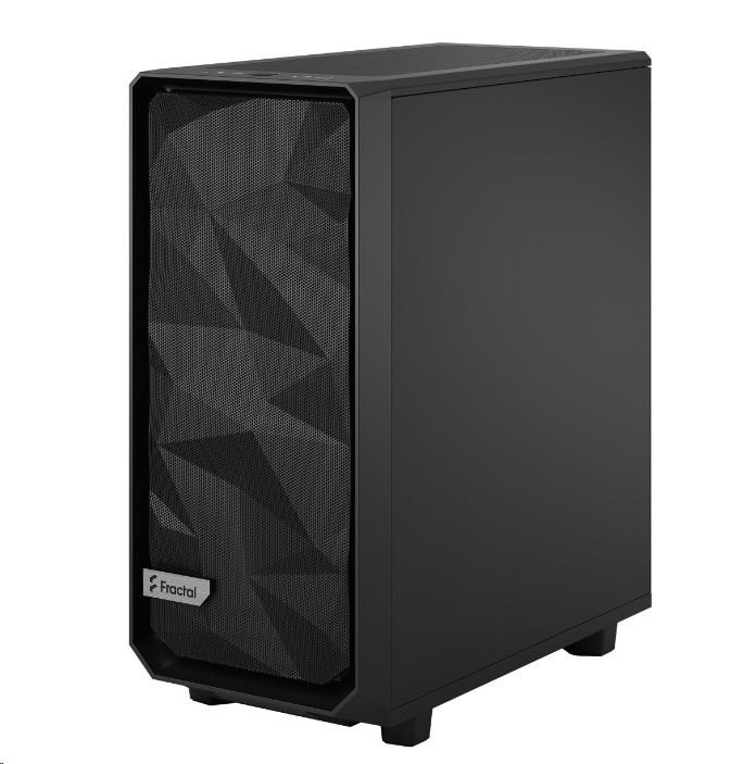 FRACTAL DESIGN skříň Meshify 2 Compact Black Solid, USB 3.1 Type-C, 2x USB 3.0, bez zdroje, mATXProvedení skříně:Midi Tower; Vybavení PC skříně:Bez integrovaného zdroje, Přední Audio panel, Přední USB panel; Počet pozic 2.5" (SSD):2; Počet pozic 3.5" (HDD):4; Bočnice:Plná.
