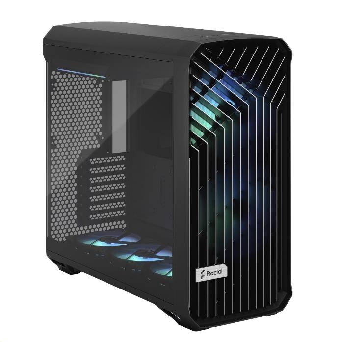 FRACTAL DESIGN skříň Torrent Black RGB TG Light Tint, 2x USB 3.0, bez zdroje, E-ATXProvedení skříně:Big Tower; Vybavení PC skříně:Bez integrovaného zdroje, Přední Audio panel, Přední USB panel; Počet pozic 2.5" (SSD):4; Počet pozic 3.5" (HDD):2; Bočnice:Prosklená.