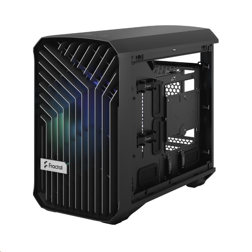 FRACTAL DESIGN skříň Torrent Nano RGB Black TG Light Tint, USB 3.1 Type-C, 2x USB 3.0, bez zdroje, mITXVybavení PC skříně:Bez integrovaného zdroje, Přední Audio panel, Přední USB panel; Počet pozic 2.5" (SSD):2; Počet pozic 3.5" (HDD):1; Bočnice:Prosklená.