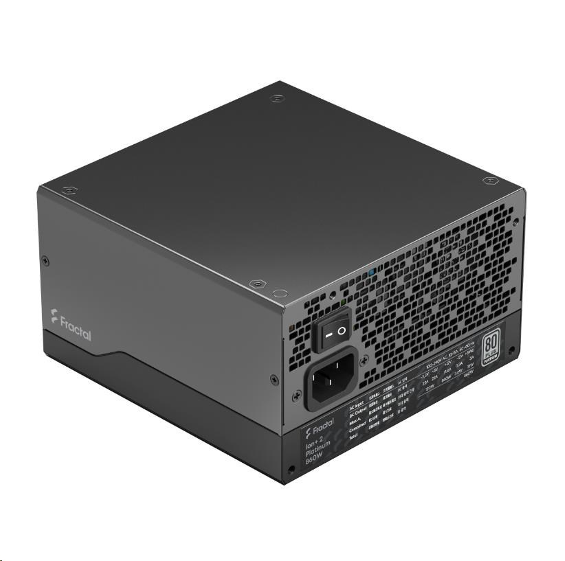 FRACTAL DESIGN zdroj Ion+ 2 860W PLATINUM, modular, 80+ PlatinumVýkon zdroje (W):860; Formát zdroje:ATX; Konektory:8pin CPU 1x, 8pin CPU 2x, PCIe 6-pin, PCIe 8-pin, SATA 15-pin; Konektory pro základní desku:ATX 20-pin, ATX 24-pin, EPS 8-pin; Modulární kabeláž; Efektivita zdroje:80 Plus Platinum; Vlastnosti zdroje:Modulární kabeláž; Podsvícení:Bez podsvícení.