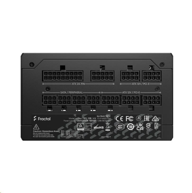 FRACTAL DESIGN zdroj Ion 750W GOLD, modular, 80+ GoldVýkon zdroje (W):750; Formát zdroje:ATX; Konektory:8pin CPU 1x, 8pin CPU 2x, PCIe 6-pin, PCIe 8-pin, SATA 15-pin; Konektory pro základní desku:ATX 20-pin, ATX 24-pin, EPS 8-pin; Modulární kabeláž; Efektivita zdroje:80 Plus Gold; Vlastnosti zdroje:Modulární kabeláž; Podsvícení:Bez podsvícení.
