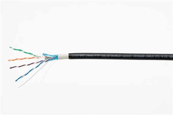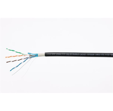 FTP kabel LYNX Cat5E, drát, dvojitý venkovní PE+PVC, černý, 305m cívkaFTP kabel LYNX Cat5E, drát, dvojitý venkovní PE+PVC, černý, 305m cívka.