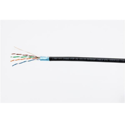 FTP kabel LYNX Cat5E, drát, dvojitý venkovní PE+PVC, černý, 305m cívkaFTP kabel LYNX Cat5E, drát, dvojitý venkovní PE+PVC, černý, 305m cívka.