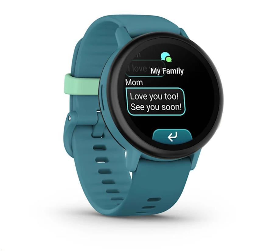 Aplikaci Garmin Jr. můžete používat k zasílání textových zpráv dětem do hodinek Bounce 2. Děti si mohou vytvářet vlastní zprávy a odpovídat kontaktům schváleným rodiči nebo reagovat na zprávy v rodinné skupině.