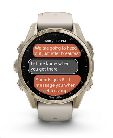 Na hodinkách můžete přijímat e-maily, textové zprávy a upozornění na spárovaném telefonu Android nebo Apple. Hodinky rovněž podporují platby Garmin Pay, abyste se při svých dobrodružstvích mohli vydat kamkoliv a nestarat se o to, že jste něco zapomněli doma. S hodinkami Garmin fénix 8 máte totiž vždy všechno důležité po ruce - na svém zápěstí.