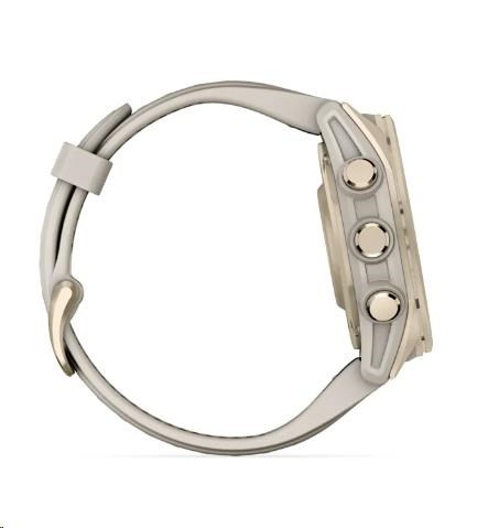 Garmin fenix® 8 – 43 mm, AMOLED, Sapphire, Soft Gold / Fog grey se silikonovým řemínkem, EU