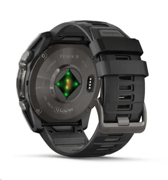 Kód: 2393699Prodejní číslo: 010-02905-21Garmin fenix® 8 AMOLED Sapphire - 51 mm - Carbon Gray DLC Titanium with Black | Pebble Gray Silicone Band, EU