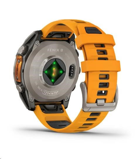 Garmin - fenix 8 Solar Sapphire - 51 mm - Carbon Gray DLC Titanium with Black | Pebble Gray Silicone Band, EUBezkontaktní platby:Garmin Pay; Bezpečnostní funkce:Detekce pádu; Hodinkové funkce:Aktualizace OTA,
