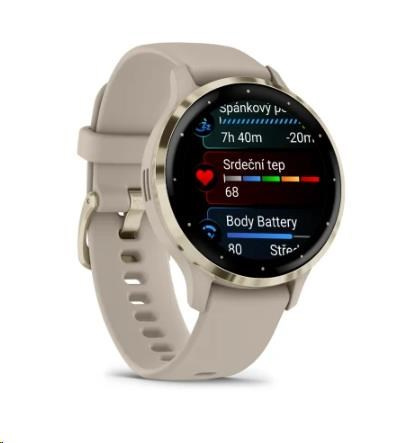 Kód: 822932Prodejní číslo: 010-02785-02Garmin Venu® 3S, Nerezová luneta Soft Gold, pouzdro French Gray, silikonový řemínek