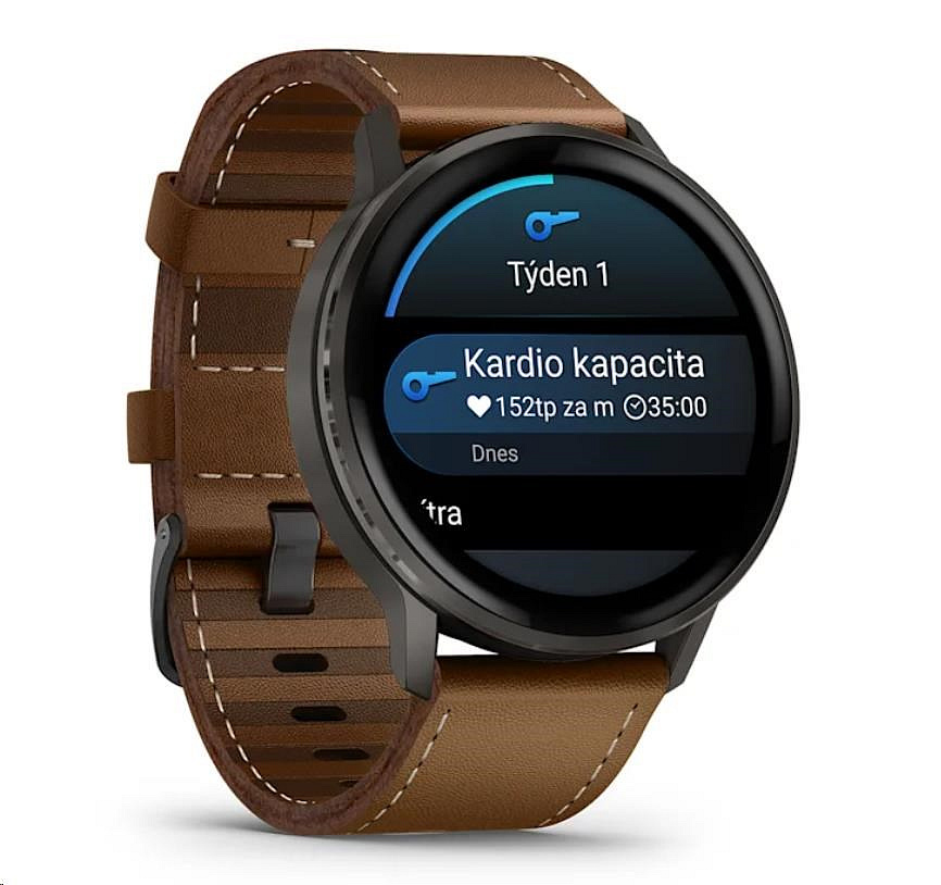 Garmin Venu 4 (45 mm) Slate / Černý silikonový řemínek a Hnědý kožený řemínek, EU