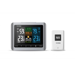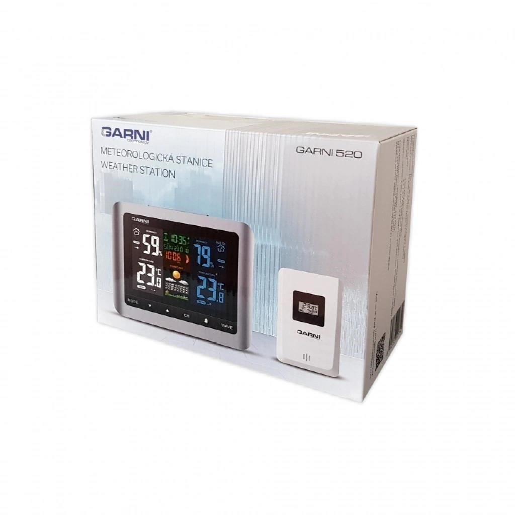 GARNI 520 - meteorologická staniceMeteorologická stanice s inverzním barevným displejem s časem a datem řízenými rádiovým signálem DCF-77, budíkem, měřením vnitřní teploty, relativní vlhkosti a absolutního barometrického tlaku, bezdrátovým čidlem pro měření vnější teploty a relativní vlhkosti..