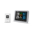 Meteorologická stanice s inverzním barevným displejem s časem a datem řízenými rádiovým signálem DCF-77, budíkem, měřením vnitřní teploty, relativní vlhkosti a absolutního barometrického tlaku, bezdrátovým čidlem pro měření vnější teploty a relativní vlhkosti.