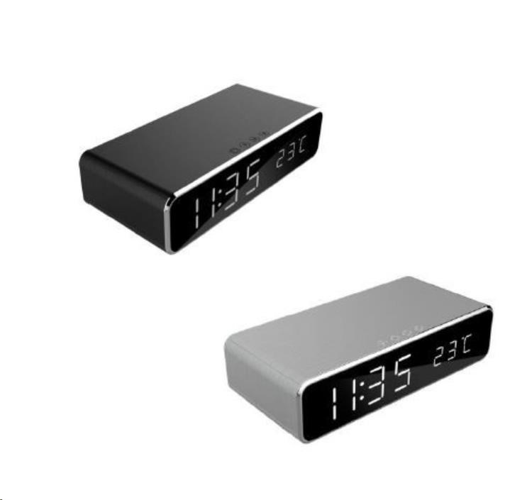 GEMBIRD digitální budík s funkcí bezdrátového nabíjení, black/černá