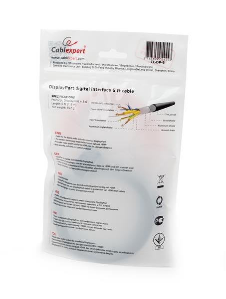GEMBIRD Kabel DisplayPort digital interface 1,8 mSpecifikace kabelu / redukce:Audio/Video kabel.
