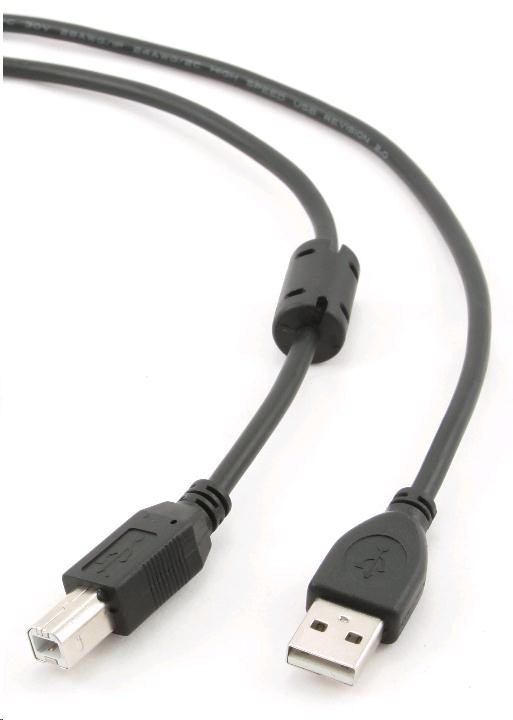 GEMBIRD Kabel USB 2.0 A-B propojovací 1,8m Premium (černý, ferit, zlacené kontakty)Specifikace kabelu / redukce:USB kabel; Verze kabelu / redukce:2.0.