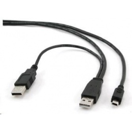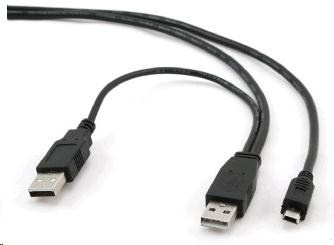 GEMBIRD Kabel USB 2.0 A-Mini B (5pin) propojovací 0,9m DUÁLNÍ (extra napájení)