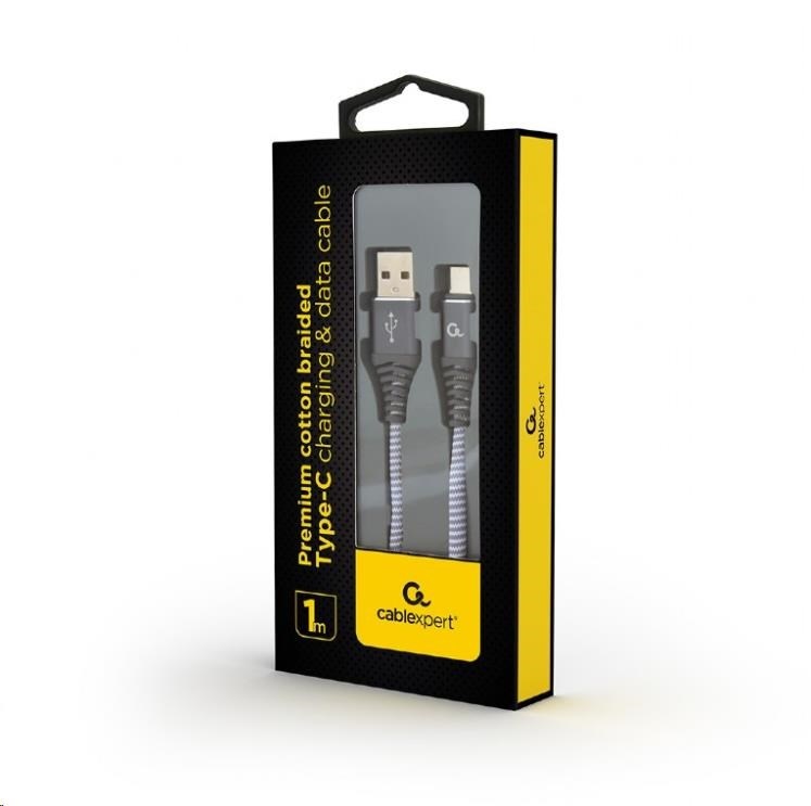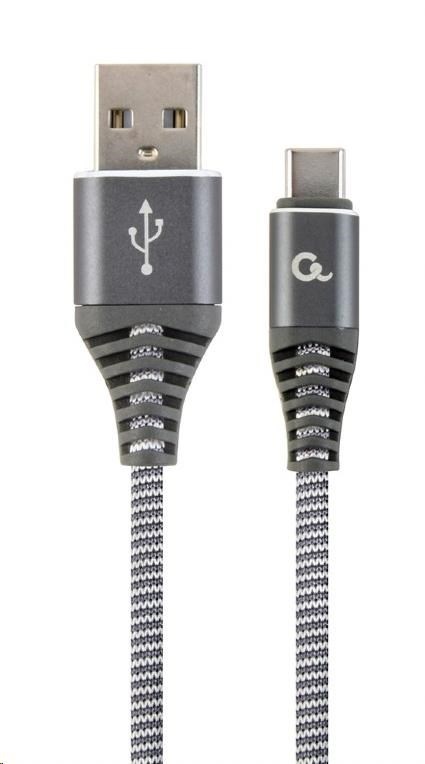 GEMBIRD Kabel USB 2.0 AM na Type-C kabel (AM/CM), 1m, opletený, šedo-bílý, blister, PREMIUM QUALITYSpecifikace kabelu / redukce:USB-C.