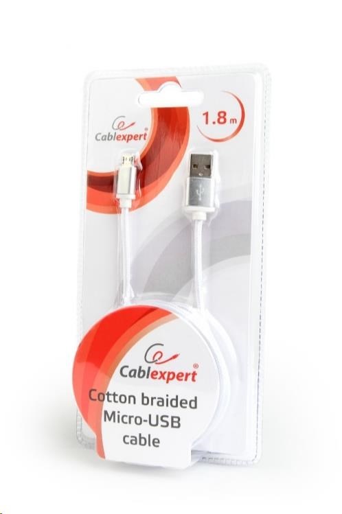 GEMBIRD Kabel MicroUSB - USB, opletený, stříbrný, 180cmSpecifikace kabelu / redukce:MicroUSB; Verze kabelu / redukce:2.0; Input:USB, Micro USB; Output:USB, Micro USB.