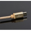 Cotton braided Micro-USB cable with metal connectors, 1.8 m, gold color, blister