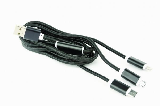 GEMBIRD Kabel USB A Male/Micro B + Type-C + Lightning, 1m, opletený, černý, blisterSpecifikace kabelu / redukce:Lightning USB.
