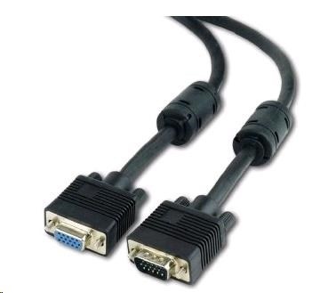 GEMBIRD Kabel VGA prodlužovací 10m (HD15M/F, dvojité stínění, feritová jádra), černýSpecifikace kabelu / redukce:VGA kabel klasický (D-SUB).