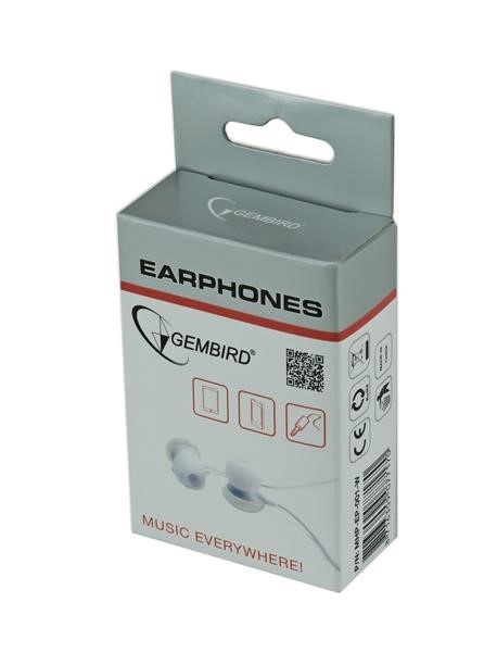 GEMBIRD sluchátka MHP-EP-001 pro MP3, bíláTyp sluchátek:Špunty; Konstrukce:Uzavřené; Konektivita:Jack 3,5 mm; Délka kabelu (m):2; Vedení kabelu:Oboustranné; Hmotnost (g):12; Rozhraní sluchátek:3.5 jack.