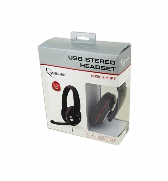 GEMBIRD sluchátka s mikrofonem MHS-U-001 Gaming, černá, USBTyp sluchátek:Plná, Okolo uší; Konstrukce:Uzavřené; Využití:Hraní; Konektivita:USB-A; Mikrofon; Konstrukce mikrofonu:Sklápěcí; Funkce mikrofonu:Potlačení šumu; Délka kabelu (m):2; Vedení kabelu:Jednostranné; Funkce:Ovládání hlasitosti; Platforma:PC / mobil; Hmotnost (g):200; Rozhraní sluchátek:USB; Vlastnosti sluchátek:S mikrofonem.