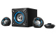 Designové herní reproduktory v konfiguraci 2.1 s celkovým výkonem 26 W. Přítomný zesilovač disponuje ovládáním hlasitosti, díky kterému si můžete užít hlasitý zvuk dle libosti, sluchátkovým výstupem a vstupem pro mikrofon. Herní design doplňuje modré podsvícení.