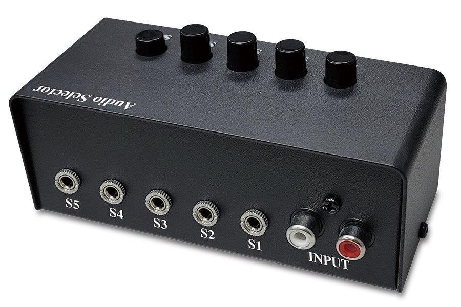 Přepínač pro až 5 stereofonních audio výstupů, například reproduktorů, připojených k jednomu zařízení na vstupu. Přepínání mezi výstupy probíhá stiskem jednoho z tlačítek na horní straně. Kovové provedení zajistí dlouhou životnost. Přepínač nevyžaduje žádné přídavné napájení.