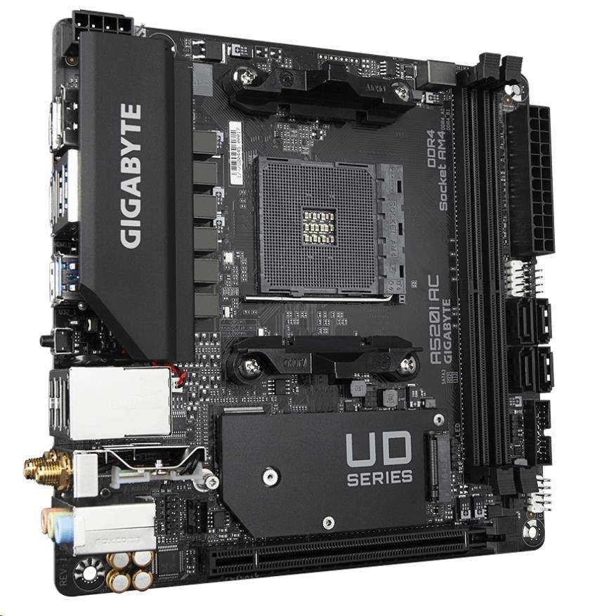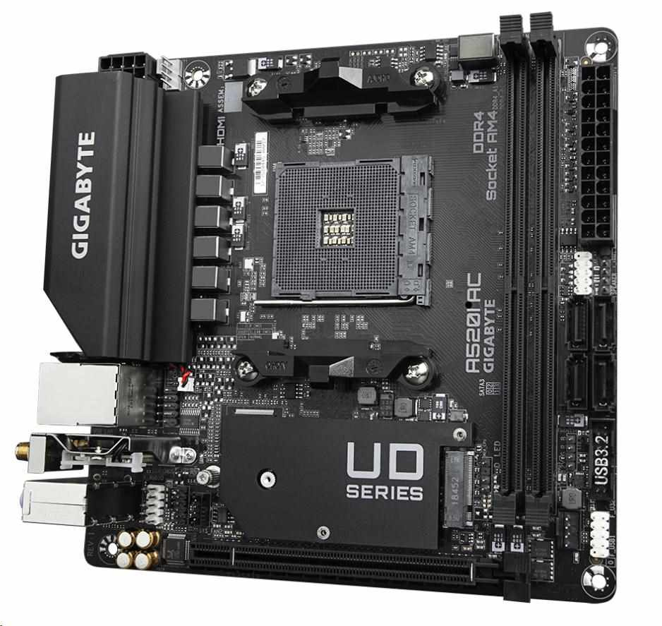 GIGABYTE MB Sc AM4 A520I AC, AMD A520, 2xDDR4, 1xDP, 2xHDMI, WI-FI, Mini-ITX
