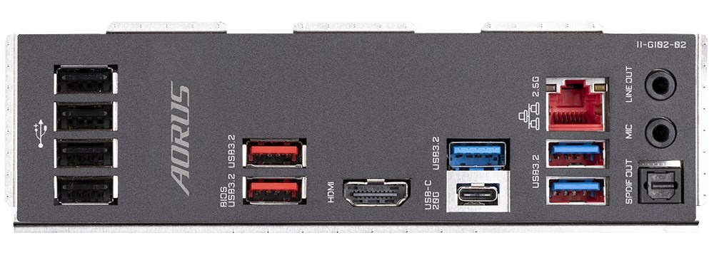 2 x USB 3.2 Gen 2 Type-A ports (red) on the back panel