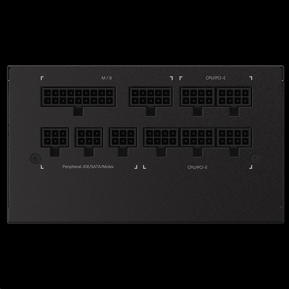 GIGABYTE zdroj P850GM, 850W, 80plus gold, modular, 120 mm fanVýkon zdroje (W):850; Formát zdroje:ATX; Konektory:8pin CPU 1x, PCIe 8-pin, SATA 15-pin, FDD; Konektory pro základní desku:ATX 24-pin; Modulární kabeláž; Efektivita zdroje:80 Plus Gold.