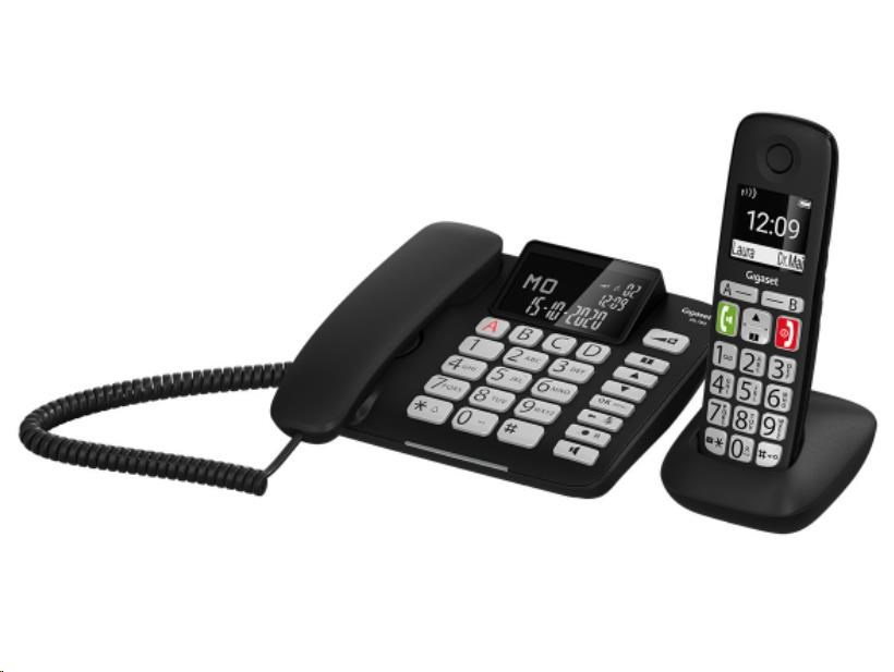 - Dvě dokonale sladěná zařízení (stolní telefon a bezdrátové sluchátko) fungují jako kombinovaná sada a zaručují maximální volnost pohybu díky spojení šňůrového telefonu na pevném místě s flexibilním sluchátkem.